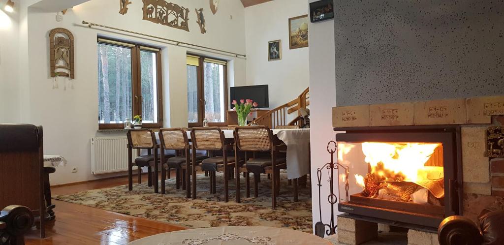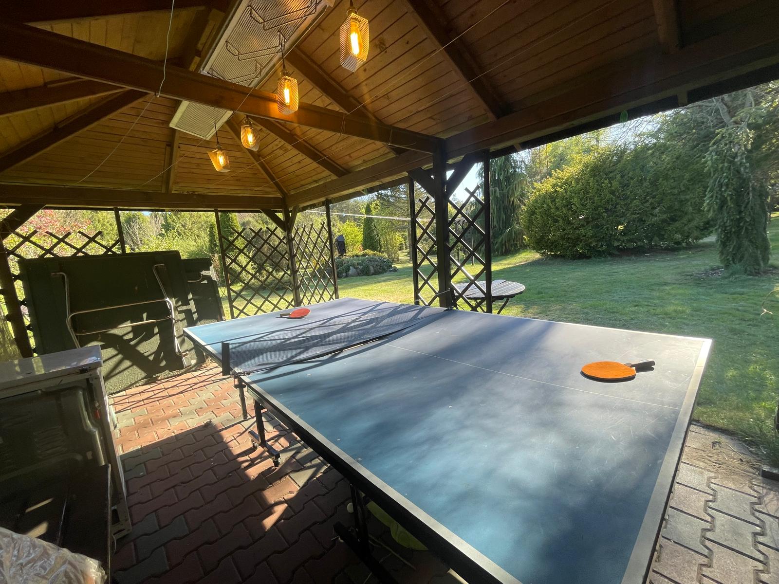 W obiekcie znajduje się 5 komfortowych sypialni, 3 nowe łazienki, sauna, 80-metrowy salon z kuchnią, kominkiem oraz piecem kaflowym, klimatyzacja, sala bilardowa z przestronnym barem i kominkiem oraz antresola. Całość utrzymana jest w najwyższym standardzie wyposażenia i komfortu.